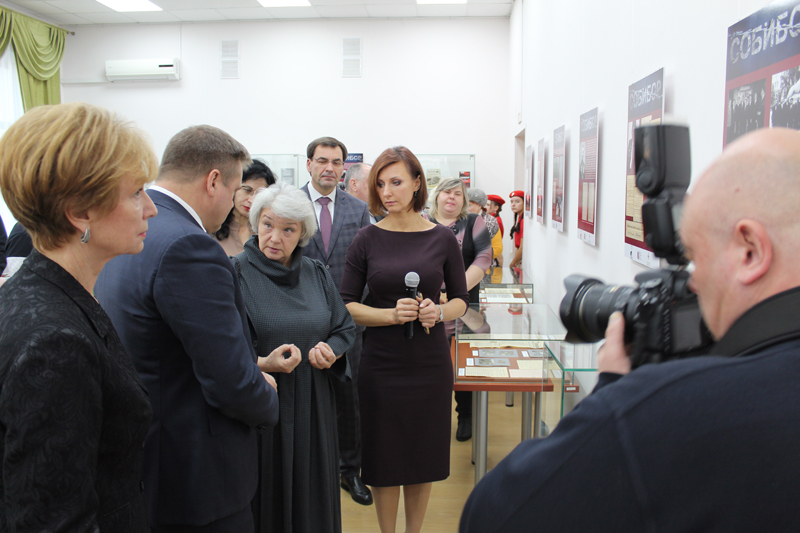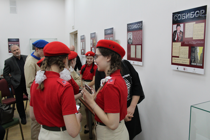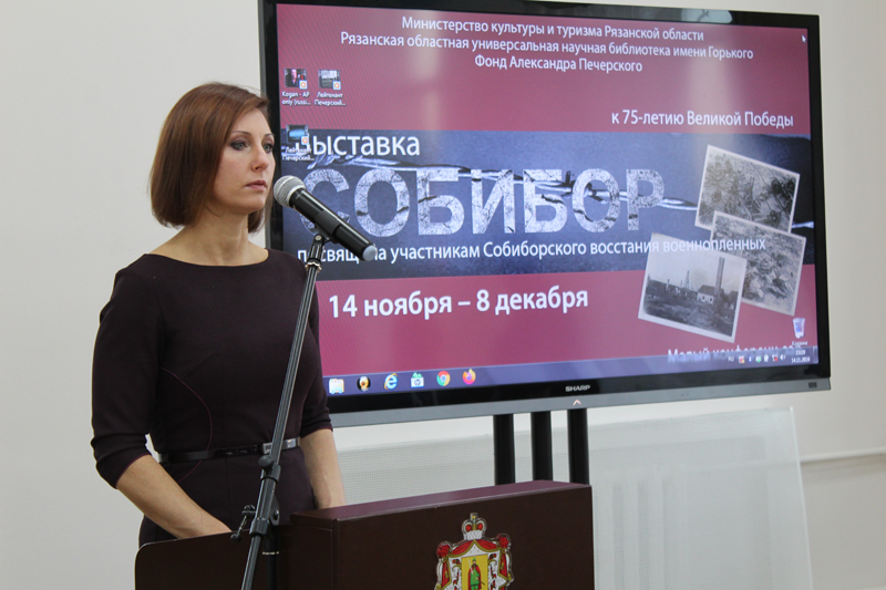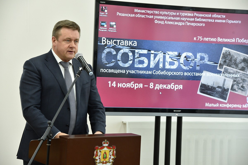 В малом конференц-зале библиотеки в рамках Всероссийского проекта «Возвращение героя» состоялось торжественное открытие выставки «Собибор», посвященной участникам восстания военнопленных 14 октября 1943 года. В церемонии приняли участие: губернатор Рязанской области Николай Любимов, и.о. регионального министра культуры и туризма Валерия Масловская, директор Фонда Александра Печерского, куратор выставки Юлия Макарова, Александр Вайцен, внук участника собиборского восстания Алексея Вайцена, директор библиотеки, председатель Общественной палаты Рязанской области Наталья Гришина, руководители администрации Рязани, представители общественных объединений, активисты «Юнармии», студенты.