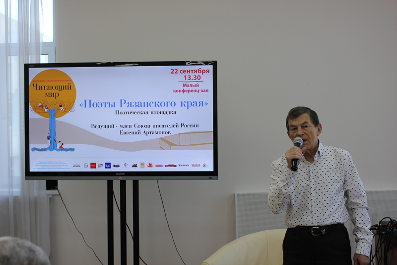 По инициативе члена Союза писателей России, члена Общественного совета библиотеки Евгения Артамонова в рамках фестиваля «Читающий мир» была организована литературная площадка «Поэты Рязанского края».