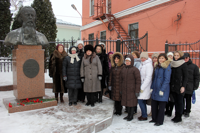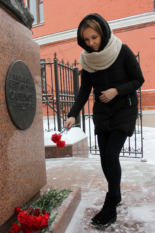 Утро 27 января традиционно начинается в библиотеке с возложения цветов к памятнику классику русской литературы Михаилу Евграфовичу Салтыкову-Щедрину. Мы знаем и любим его как гениального художника и мыслителя, блестящего публициста и критика, сурового обличителя пороков старого строя и борца за свободу и социальную справедливость, в произведениях и художественных образах которого правдиво и ярко запечатлена целая эпоха жизни русского народа.