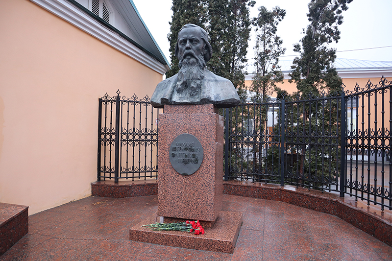 Участники митинга возложили цветы к подножию памятника писателю Михаилу Евграфовичу Салтыкову-Щедрину.