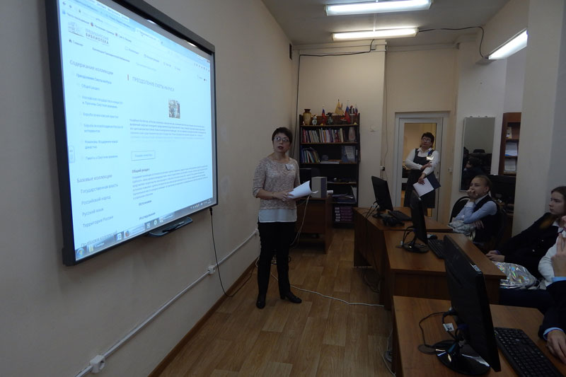 Сотрудники удаленного электронного читального зала с доступом к фонду Президентской библиотеки провели для учащихся 7 класса лицея №4 медиа-семинар «Не забудет наш народ доблесть русских воевод» в рамках факультатива «Я - гражданин России». Изложение исторических событий того времени сопровождалось обзором документов коллекции Президентской библиотеки «Преодоление Смуты на Руси». Ребята смогли посмотреть акты времен правления Василия Шуйского, описание Нижнего Новгорода глазами итальянского путешественника, портреты исторических деятелей, воспроизведенных со старинных гравюр, узнать тайну Маринкиной башни в Коломне и познакомиться с книгой, посвященной памяти Ивана Сусанина, находящейся в фонде нашей библиотеки и входящей в данную коллекцию.