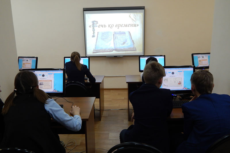 Узнать много интересного о древнерусской литературе ребятам помогло участие в интерактивной игре «Река времени», размещенной на сайте «Президент России – гражданам школьного возраста». Ребята «расставляли» российские города по границе нашего государства, снаряжали воина на сражение, подбирали к старославянским фразам из «Поучения Владимира Мономаха» подходящие по смыслу современные выражения.
