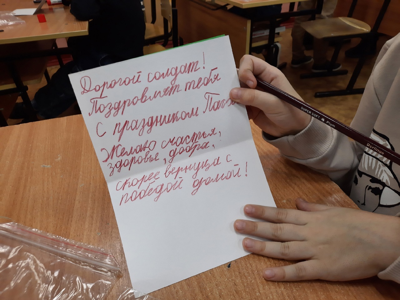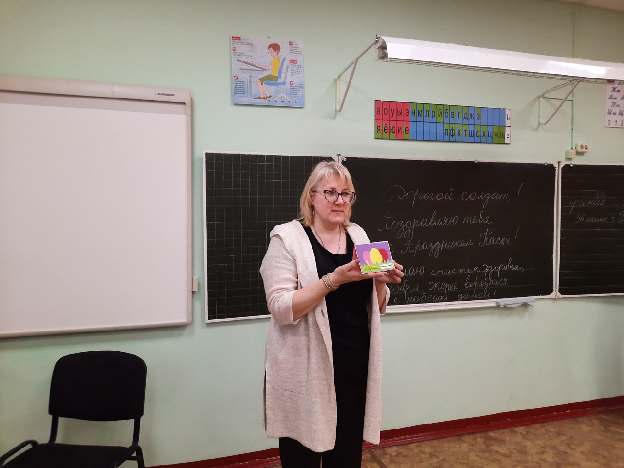 Пасхальные сувениры с изображением крашенок – главного символа этого праздника – ребята сделали очень красивыми и нарядными. В каждой открытке мальчишки и девчонки написали несколько теплых слов с пожеланиями и словами поддержки из родных мест. Надеемся, что маленькие приветы станут добрым подарком солдатам от рязанской детворы.