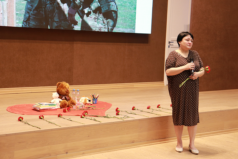 Перед участниками патриотической акции, учащимися общеобразовательных школ города Рязани, юнармейцами выступили директор библиотеки имени Горького, председатель Общественной палаты области Наталья Николаевна Гришина, представитель Управления Федеральной службы безопасности России по Рязанской области Сергей Анатольевич Епишин и Надежда Юрьевна Богомолова, вдова Героя России Александра Станиславовича Богомолова.