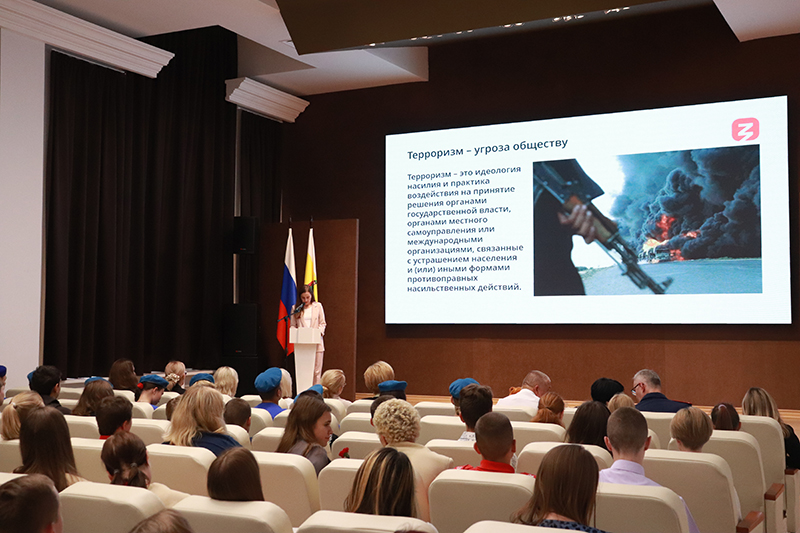 Консультант отдела координации работы по вопросам безопасности и профилактике терроризма Главного управления по взаимодействию с федеральными территориальными органами Рязанской области Ангелина Павловна Карташова в своей лекции напомнила всем о правилах противодействия терроризму в современных условиях. Бдительность, сплоченность и неравнодушие являются важными факторами предупреждения террористических действий.