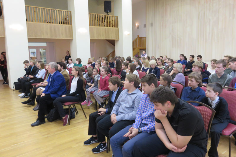 Учащиеся школы №6 с углубленным изучением французского языка, присутствовавшие на концерте, задавали композитору вопросы и сами представили для него небольшой концерт. Ученики 3 «Б» класса исполнили песни на родном для нашего гостя языке, Влада Потапкина и Анастасия Тихонова выступили с веселым, ритмичным танцем.