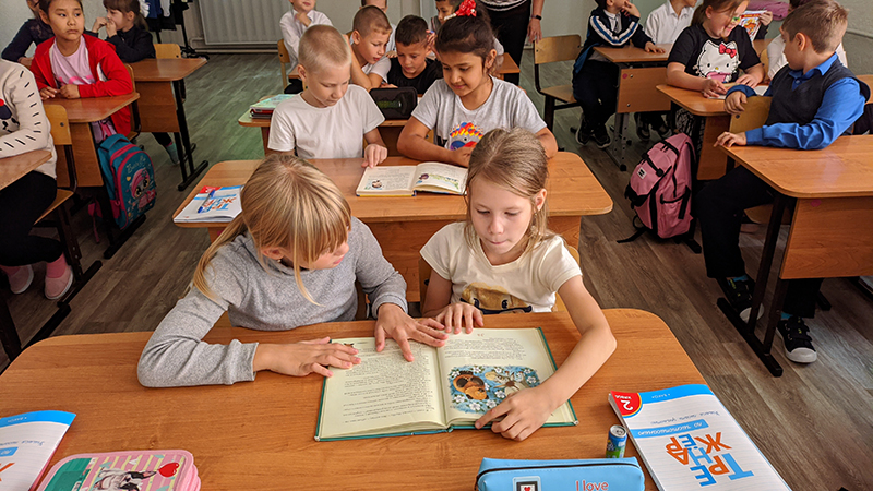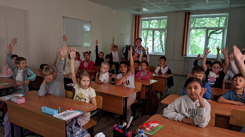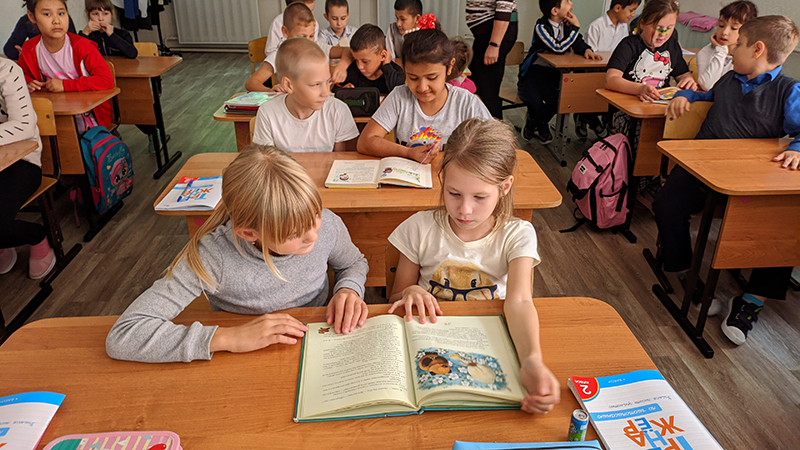 Ученики школы-интерната им. Полетаева Ф.А. вместе с сотрудником кафедры детской литературы совершили литературное путешествие в придуманную писателем удивительную страну «Вообразилию», которую не найдешь ни на одной географической карте мира. Ученики отгадывали загадки о временах года, отвечали на вопросы литературной викторины, с удовольствием смотрели фрагменты мультфильмов, созданных по мотивам стихов и сказок автора.