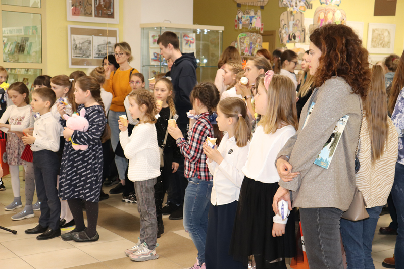 Право перерезать символическую ленточку было предоставлено Михаилу Константиновичу Шелковенко, заслуженному художнику Российской Федерации, первооткрывателю детских выставок в Рязани, и Андрею Анатольевичу Кашаеву, ректору Рязанского института развития образования, бывшему ученику Людмилы Львовны.