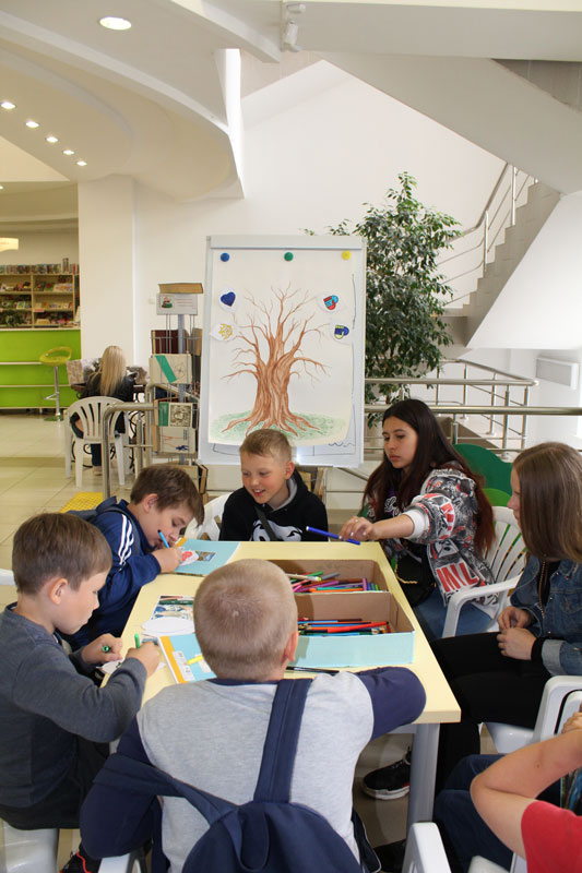 Дети принимали участие в работе площадок, организованных библиотекой: с воодушевлением рисовали дерево дружбы, изучали национальные орнаменты, сосредоточенно плели браслеты для друзей, упражнялись в занимательной математике, с интересом отвечали на вопросы интеллектуальных викторин, знакомились с «вредными советами» Григория Остера, решали кроссворды и вспоминали пословицы о дружбе.