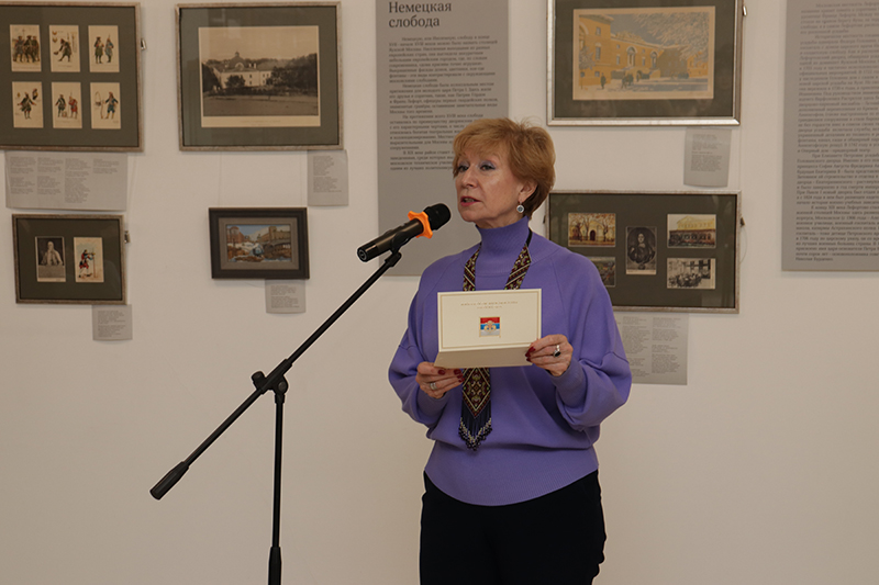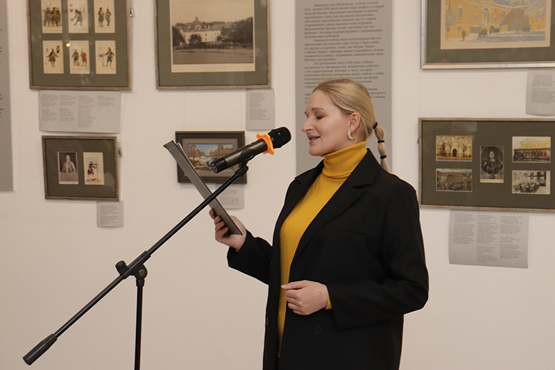 Елена Юрьевна Фесенко, генеральный директор издательского дома «Лингва-Ф» и куратор выставки «Петровские места Москвы», выразила признательность сотрудникам библиотеки за прекрасную организацию выставки и рассказала о книгах, которые удалось выпустить в юбилейный год 350-летнего юбилея Петра Великого: «У нас в издательстве вышло порядка пяти книг, связанных с Яузской Москвой и с историей Петра I. И когда мы работаем с каждой книгой, мы соприкасаемся с подлинным и редким материалом. А сегодня нам выпала прекрасная возможность не только рассказать об этом историческом проекте, но и показать его в городе Рязани».