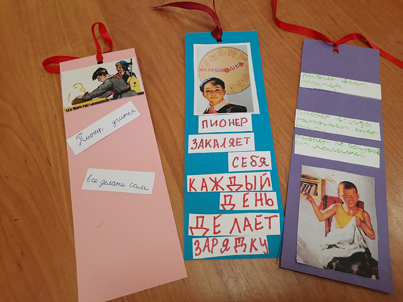 Когда речь зашла о законах, по которым жили пионеры, выяснилось, что и сейчас главными для подрастающего поколения являются вечные человеческие ценности - любовь к своей стране, семье, уважение старших, помощь нуждающимся, чувство дружбы и верности. На память о встрече ребята своими руками сделали книжные закладки с правилами настоящих пионеров.