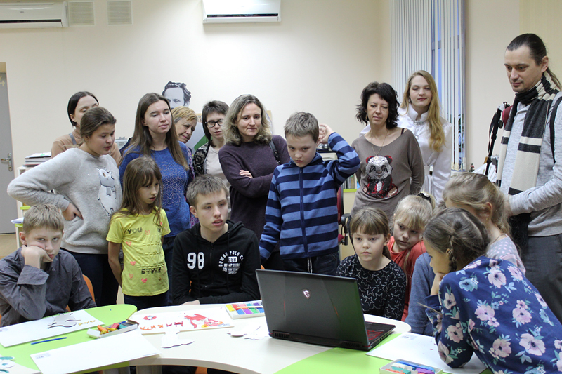 На мастер-классе в рамках проекта «Инклюзивная творческая мастерская «Помощники Деда Мороза» ребята учились создавать пластилиновые мультфильмы в технике перекладки. Необходимо было сперва подготовить все элементы будущего мультфильма, а затем каждый элемент отснять в нескольких положениях на листе бумаги, чтобы получился эффект перемещения. Мальчишки и девчонки вместе с родителями с увлечением принялись за дело. В результате было отснято более 180 кадров, которые Александра Горшкова соединила в готовый мультфильм.