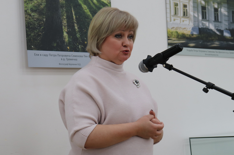 В приветственном слове министр культуры и туризма Рязанской области Виталий Юрьевич Попов рассказал о мероприятиях по подготовке к празднованию 200-летнего юбилея П. П. Семенова-Тян-Шанского.