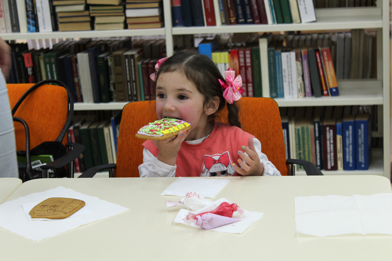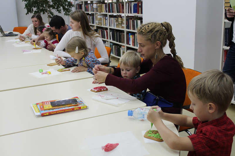 Выставка детских поделок стала подтверждением того, что дети увлечены чтением. Крокодил Гена и Чебурашка, Золушка и Чиполлино, Муха Цокотуха и другие любимые литературные герои, сделанные из природного материала, вызвали всеобщее восхищение. Все семьи с детьми получили благодарности и подарки. Сюрпризом для детей стал мастер-класс по росписи пряников. Вечернее чаепитие с пряниками в семьях – особая погода в доме!