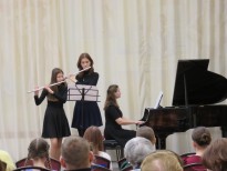 В заключение вечера Екатерина и Анна Пименовы трогательно исполнили песню «Милая моя мама» В. Гаврилина.