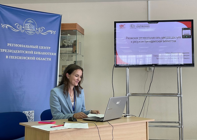 Рязанский регион представила заведующая Региональным центром доступа к информационным ресурсам Президентской библиотеки Рязанской областной универсальной научной библиотеки им. Горького Марина Александровна Тябина. В своем выступлении она рассказала о деятельности Рязанского регионального центра, а также о развитии сети центров удаленного доступа в регионе. Марина Александровна выразила уверенность в сохранении теплых дружественных отношений, сложившихся с Пензенским региональным центром, и дальнейшей работе над совместными проектами.