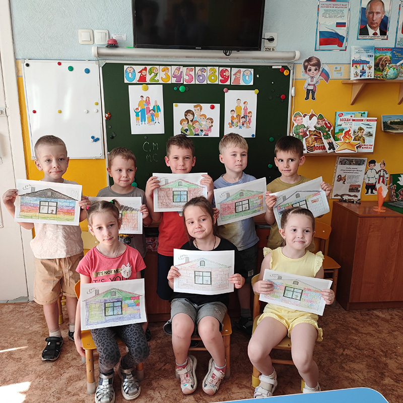 Дети с огромной радостью знакомили друг друга со своими семьями, показывали фотографии своих родных людей, рассказывали о семейных традициях совместного отдыха, приняли участие в игре «Мы вместе». Затем каждый из малышей нарисовал дом своей мечты, написав на его кирпичиках главные слова, из которых состоит семейное счастье.