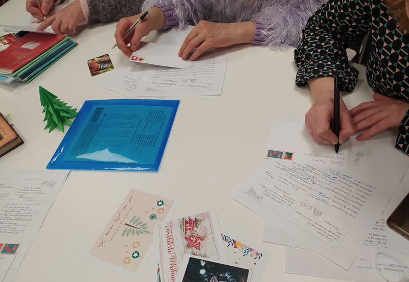 В радостной предпраздничной атмосфере участники говорили о традициях в Германии, пели рождественские песни. Гости обменялись тёплыми пожеланиями к Рождеству и Новому году, подписав друг другу красочные открыткина немецком языке.