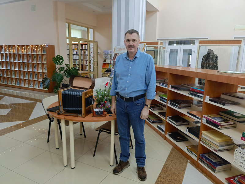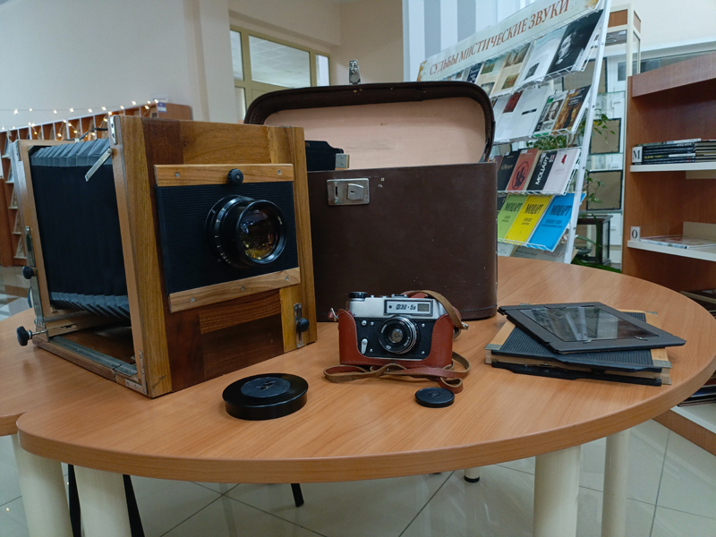 В день рождения библиотека не осталась без внимания. Выставка техники Центра литературы по искусству пополнилась ценным подарком от жителей города: Андрей Михайлович Кривцов подарил нам два старинных фотоаппарата: большой деревянный фотоаппарат «ФК» и мечту каждого советского фотолюбителя - фотоаппарат «ФЭД».