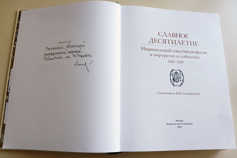 Рязанская областная библиотека имени Горького получила в дар от председателя Национального союза библиофилов Михаила Вадимовича Сеславинского книгу «Славное десятилетие: Национальный союз библиофилов в портретах и событиях. 2010-2020».