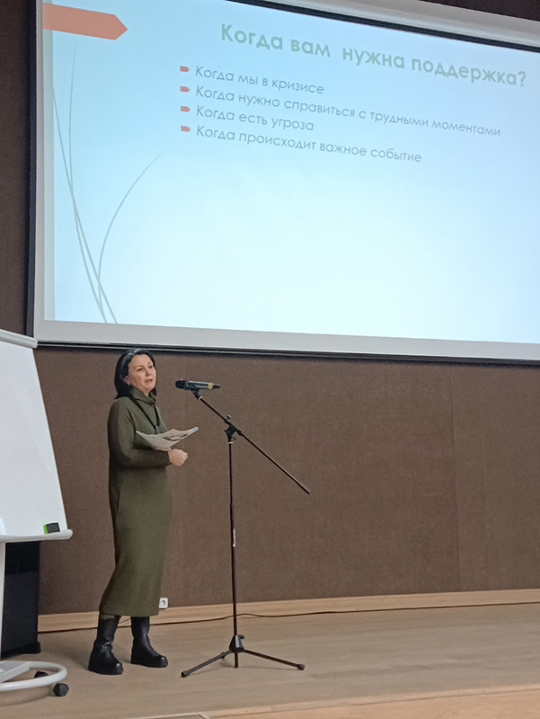 Лекцию «Поддержка и самоподдержка в семейной системе» представила психолог, гештальт-терапевт, психодраматист, региональный тренер МИГИП, ведущая терапевтических групп Ирина Маслова.