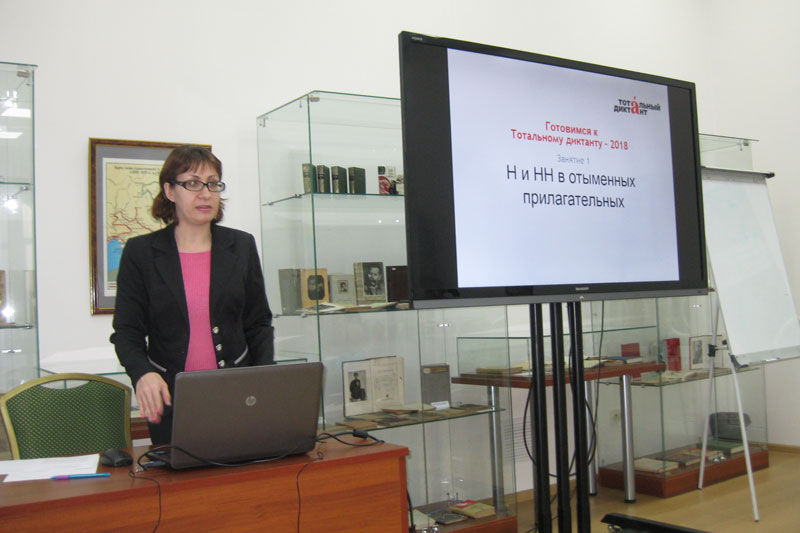 Филолог напомнила ряд правил написания «н» или «нн» в прилагательных, наречиях, причастиях; привела примеры правильной пунктуации при обособлении членов предложения. Будущие участники акции проверили свои знания, написав небольшой диктант. Наталья Николаевна ответила на многочисленные вопросы, дала ценные рекомендации и пожелала всем успехов в написании «Тотального диктанта».