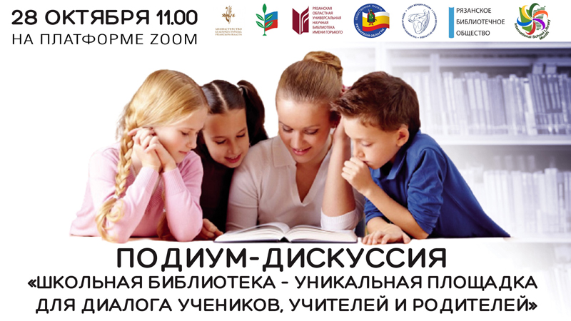 28 октября в рамках Международного месячника школьных библиотек в онлайн-режиме на платформе ZOOM в 11.00 состоится подиум-дискуссия «Школьная библиотека – уникальная площадка для диалога учеников, учителей и родителей».