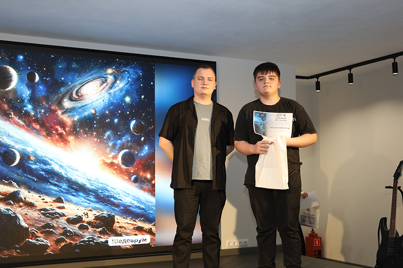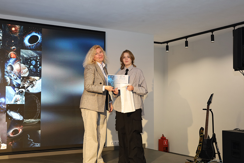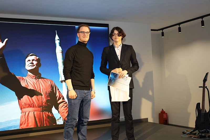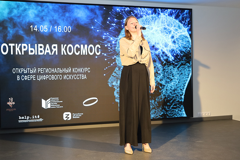 14 мая в концертно-выставочном зале Рязанской областной библиотеки имени Горького прошла церемония награждения победителей конкурса «Открывая космос». В церемонии приняли участие: начальник управления по реализации государственной политики министерства культуры Рязанской области Дмитрий Михайлович Филиппов, доцент кафедры «Информационные технологии в графике и дизайне» Рязанского государственного радиотехнического университета имени В.Ф. Уткина Елена Андреевна Уварова, исполняющий обязанности заведующего кафедрой «Архитектура, градостроительство и дизайн» Рязанского института (филиала) Московского политехнического университета, член Союза дизайнеров России Наталья Евгеньевна Кобзева, педагог дополнительного образования высшей квалификационной категории МБУДО «Центр детского творчества “Южный” – фотостудия “Кадр”» Иван Иванович Питюрин, звукорежиссер Рязанского государственного академического русского народного хора имени Е. Попова Антон Игоревич Метликин.