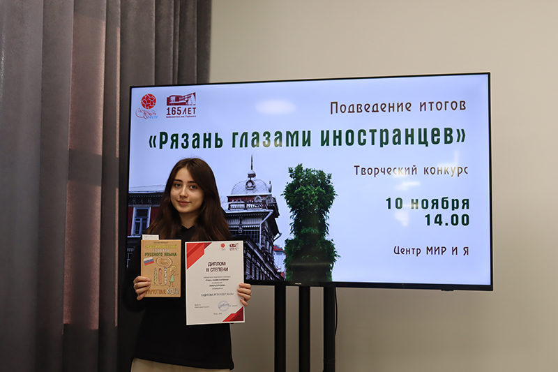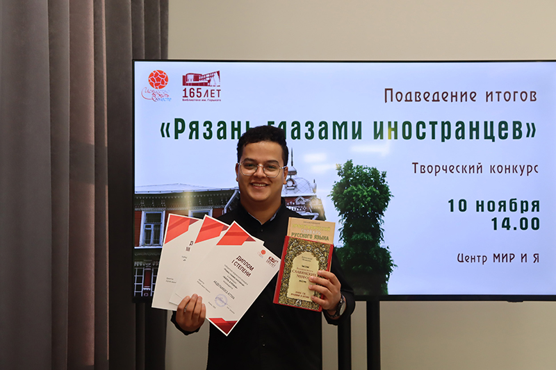 На церемонии награждения в библиотеке имени Горького иностранные студенты получили сертификаты участников, дипломы победителей и книжные призы, поделились своими впечатлениями от проживания в Рязани и рассказали истории, запечатленные в их фотографиях. Благодарностями в Год педагога и наставника были отмечены преподаватели Рязанского государственного медицинского университета имени академика И.П. Павлова, Рязанского государственного радиотехнического университета имени В.Ф. Уткина, Рязанского станкостроительного колледжа РГРТУ.