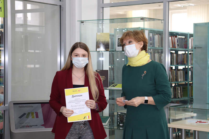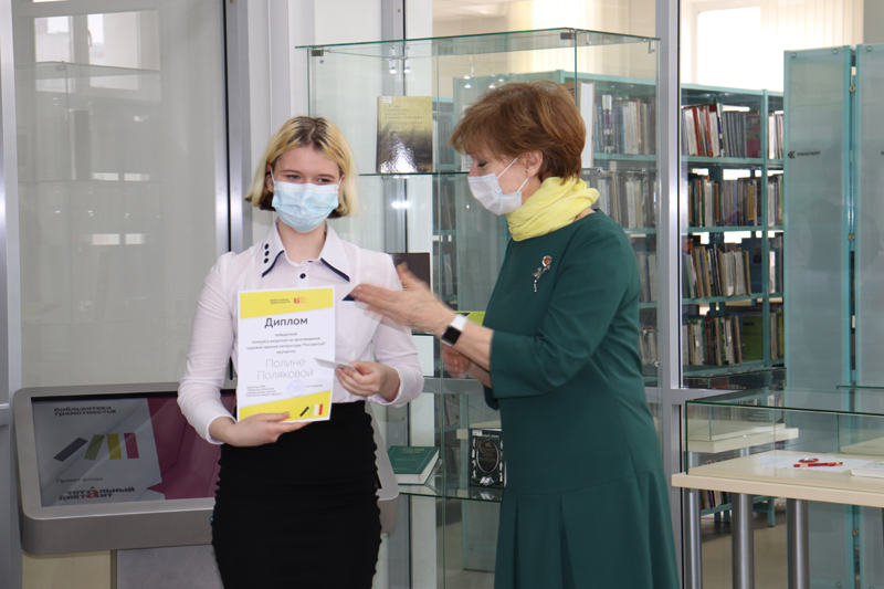Анастасия Корнева (рецензия на роман Джона Фаулза «Коллекционер»), Полина Полякова (рецензия на роман Оскара Уайльда «Портрет Дориана Грея») и Анастасия Щавлева (рецензия на роман Луизы Мэй Олкотт «Маленькие женщины»). Директор Рязанской библиотеки имени Горького торжественно вручила девушкам дипломы и подарочные сертификаты в книжный магазин.