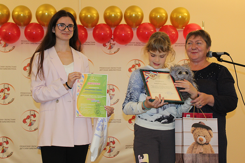 В каждой библиотеке в учреждениях города и муниципалитетов выбрали самого выдающегося участника «Летнего чтения» и сетевой игры. В итоге три десятка юных книголюбов собрались 10 сентября на заключительную торжественную церемонию в стенах Рязанской областной детской библиотеки. Здесь ребят поздравили с их достижениями и вручили призы. Собравшихся приветствовала на церемонии консультант отдела министерства культуры Рязанской области Ольга Уласевич. Также спецпризы вручали: