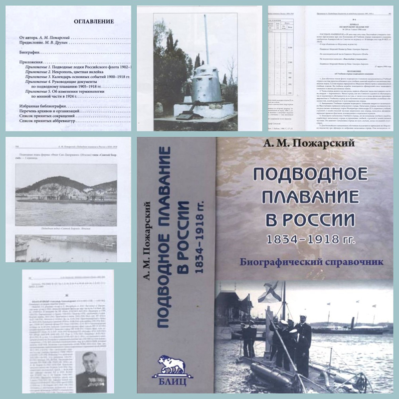 Биографический справочник «Подводное плавание в России, 1834–1918 гг.» собран кандидатом исторических наук, капитаном II ранга А.М. Пожарским.