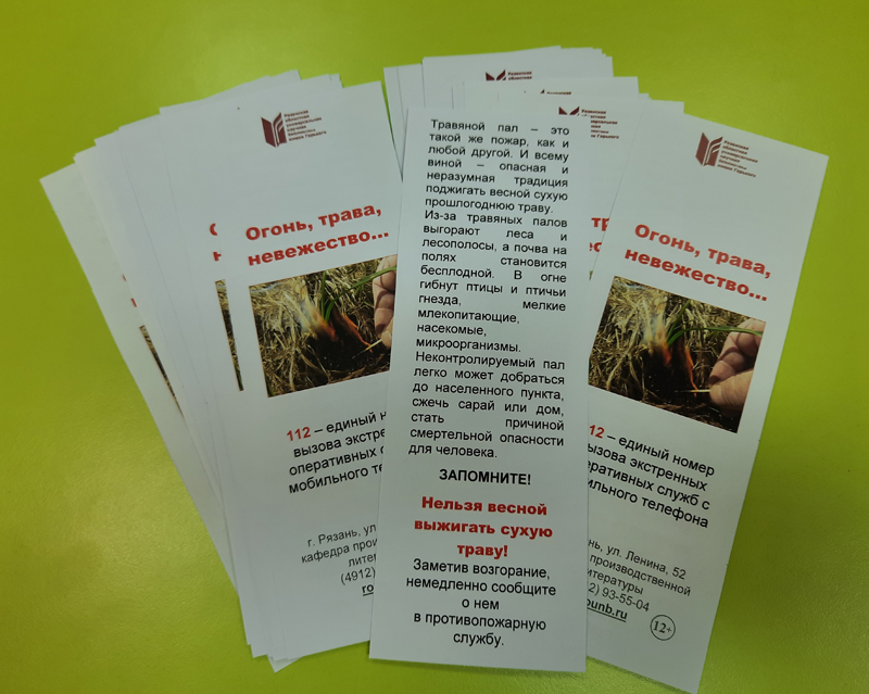 Жителям и гостям города вручались закладки с информацией о пагубных последствиях травяных палов для окружающей среды, а для посетителей библиотеки им. Горького демонстрировался экоролик «Пожар. Вместе против общей беды».