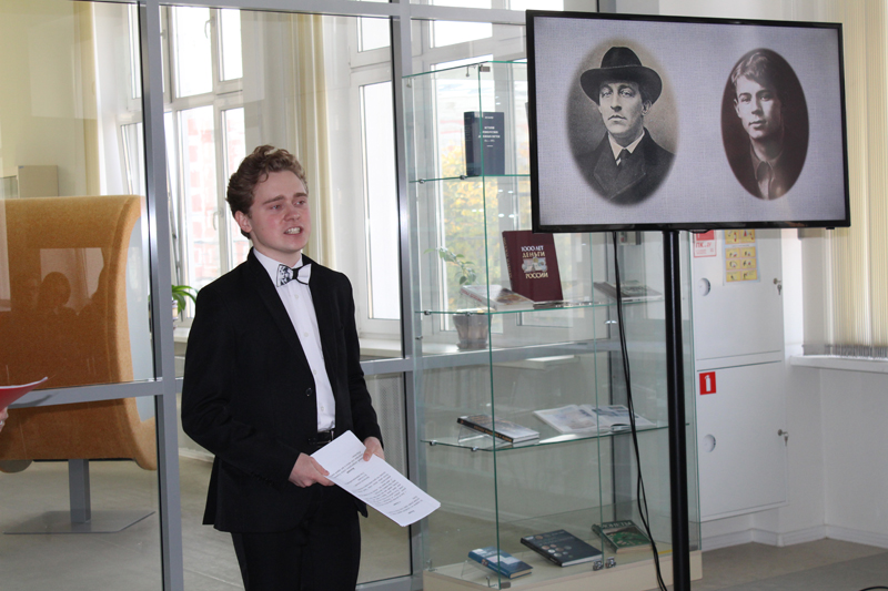 Сотрудники универсального читального рассказали студентам железнодорожного колледжа и школьникам о яркой и непростой судьбе поэта и его поэтическом творчестве. Рассказ сопровождался отрывками из документальных фильмов о личной жизни Сергея Есенина, о его творчестве, об отношениях с родными и близкими.