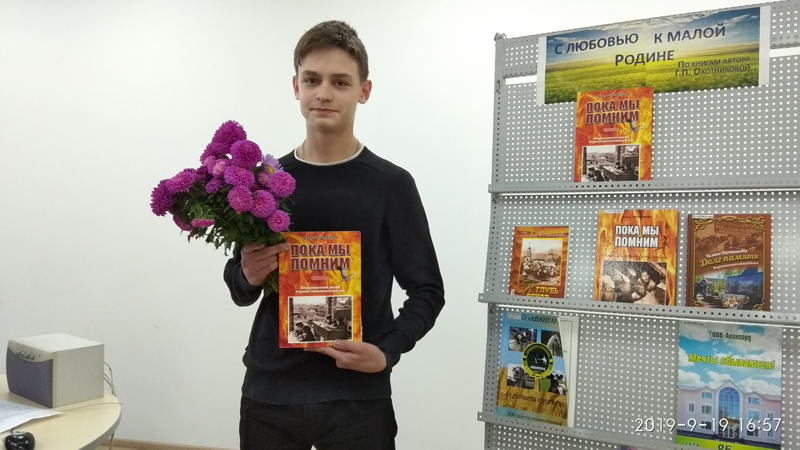 Участником Фестиваля национальной книги «Читающий мир» стала Галина Павловна Охотникова, краевед, член Рязанского союза профессиональных литераторов, лауреат премии «Человек года 2019», презентовавшая вторую книгу из цикла «Пока мы помним», в которой собраны воспоминания детей о послевоенном времени (1946–1952 годы). В прошлом году была издана первая книга, в ней были опубликованы воспоминания тех, кто детьми проживал в военное время на территории Тюшевского сельского поселения Рязанской области. Автор-составитель сама принадлежит к этому поколению, поэтому для нее особенно дороги воспоминания односельчан.