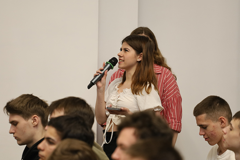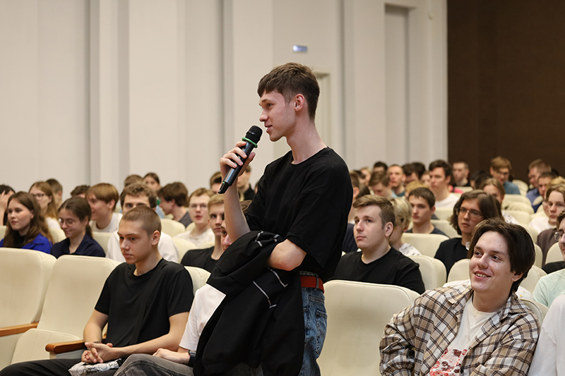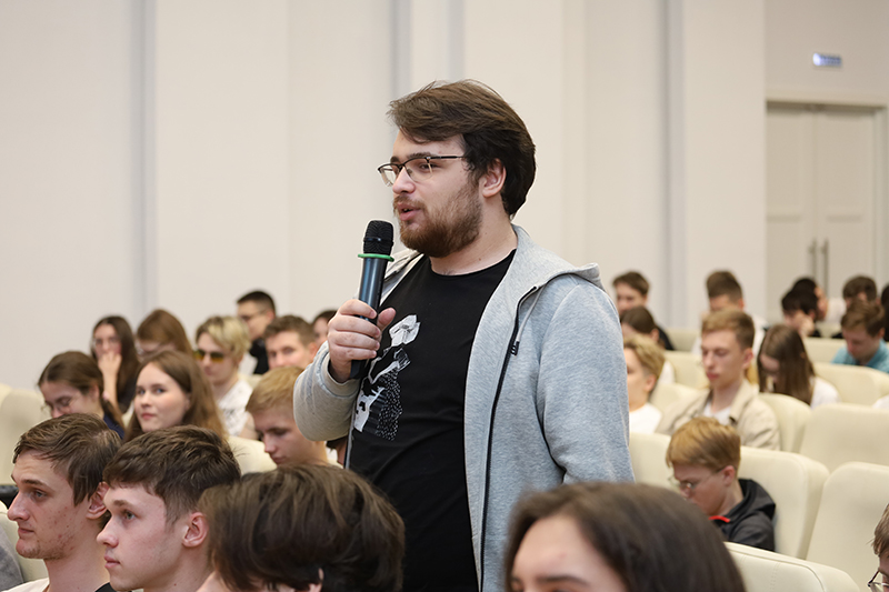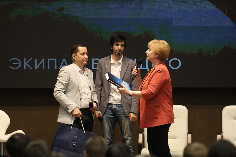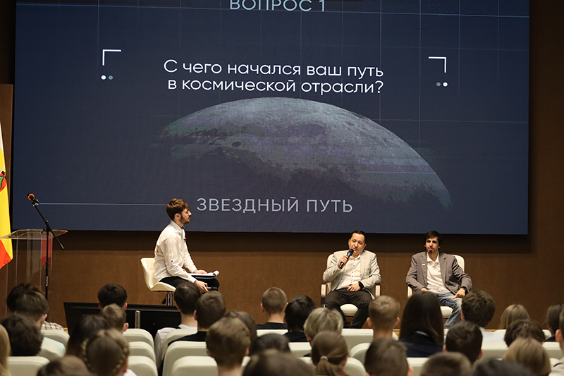 Беседа со специалистами «Роскосмоса» была очень увлекательной, интересной и вызвала вопросы у публики – студентов Рязанского государственного радиотехнического университета имени В.Ф. Уткина и Рязанского колледжа электроники. Самые активные ребята получили сувениры от молодежного совета. Нашей библиотеке гости вручили книги от «Роскосмоса».