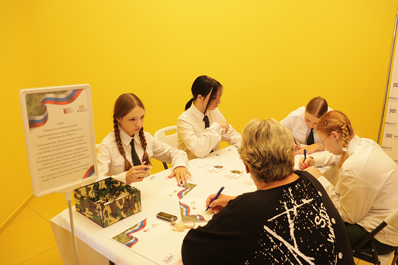 Учащиеся кадетского класса школы № 38 города Рязани читали со сцены Горьковского зала стихотворения, а перед началом мероприятия написали письма военнослужащим, находящимся в зоне проведения специальной военной операции.