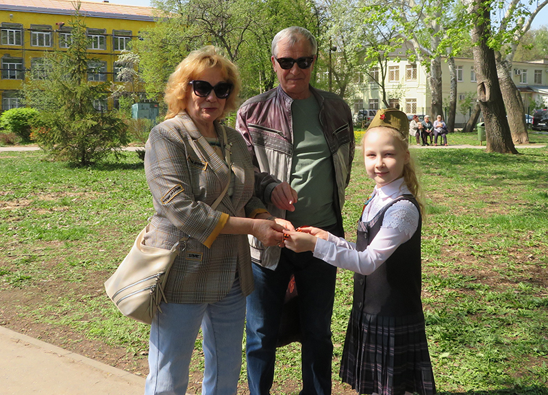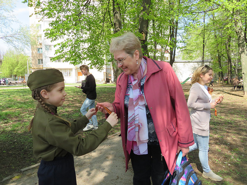 В ходе акции горожанам были розданы подарочные открытки «Я помню! Я горжусь!», значки «С Днем Победы!» и георгиевские ленточки.