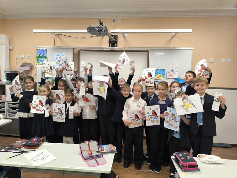 Школьники получили в подарок красочные книжные закладки с полезной информацией о подкормке птиц, раскрасили рисунки и почитали любимые стихотворения про птичек.