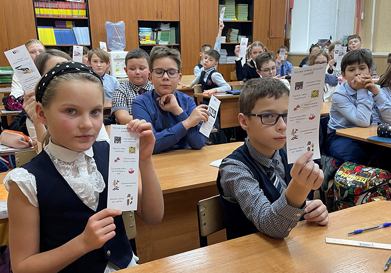 Школьники получили в подарок красочные закладки с полезной информацией о подкормке птиц и изготовлении кормушек для них.