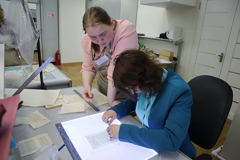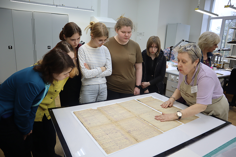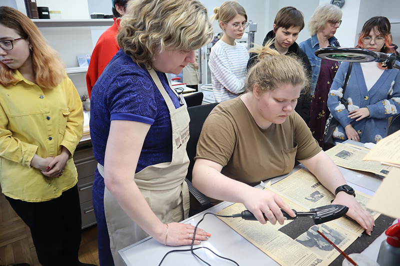 На экскурсии студенты познакомились с процессом реставрации и переплета книг, с условиями фазового хранения. Увидели новейшее оборудование и материалы, применяемые в восстановлении различных документов. Каждый участник смог поучаствовать в том или ином технологическом реставрационном процессе.