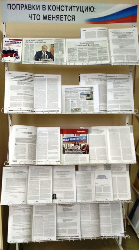 Подробную информацию о поправках в Конституцию Российской Федерации можно получить на выставке, которая будет работать с 1–31 декабря в зале периодических изданий