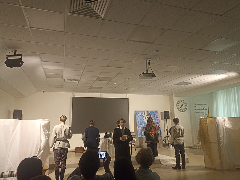 Молодежный театр Центральной городской библиотеки имени С.А. Есенина создан не так давно. Юные актеры сами сконструировали декорации, пытаясь придать сцене атмосферу начала XX века.