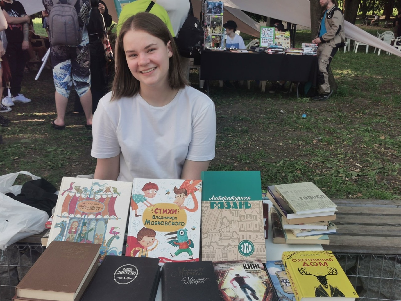 Волонтеры культуры Рязанской области организовали площадку с буккроссингом, где каждый желающий мог взять книгу с собой или просто почитать её.