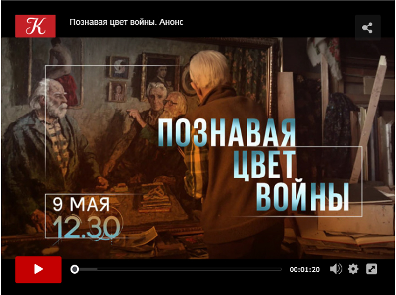 Дорогие читатели! 9 мая в 12:30 на телеканале «Культура» состоится премьера документального фильма «Познавая цвет войны». Одним из героев фильма стал наш земляк, советский и российский живописец, народный художник СССР Виктор Иванов (родился в 1924 году).