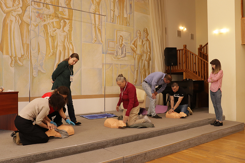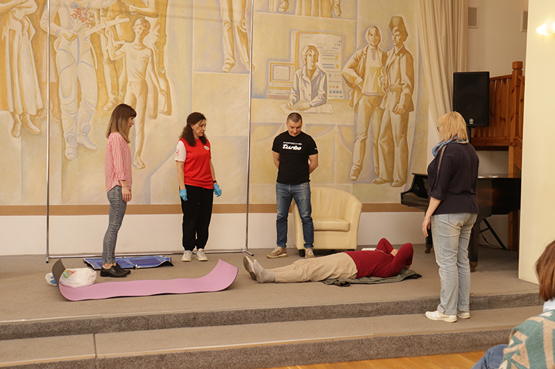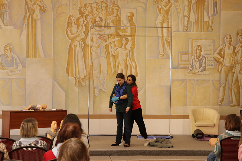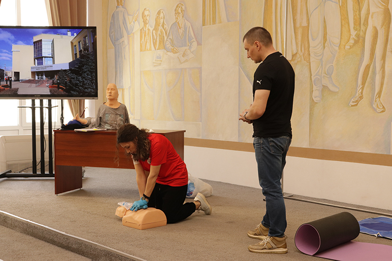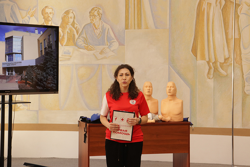 24 апреля в рамках мероприятий, приуроченных ко Дню охраны труда, в библиотеке имени Горького состоялось занятие по оказанию первой помощи пострадавшим. Его провела специалист организации «Красный крест» Елена Владимировна Коновалова. Сотрудники библиотеки отработали с применением специальных тренажеров и манекенов практические навыки по проведению сердечно-легочной реанимации (СЛР) и искусственной вентиляции легких (ИВЛ).