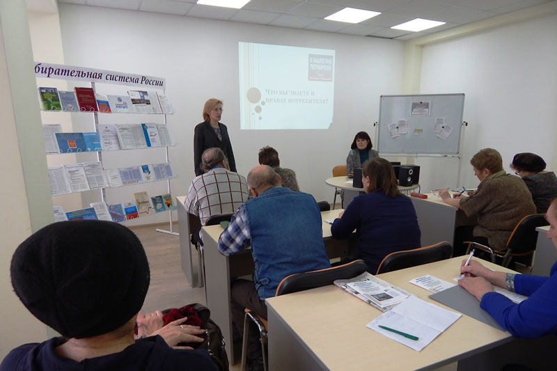 Сегодняшняя встреча была посвящена теме прав потребителей. Интерактивную лекцию провела Любовь Юрьевна Ларина, кандидат юридических наук, доцент кафедры уголовного права и процесса Рязанского государственного университета им. С.А. Есенина, адвокат Адвокатской палаты Рязанской области. Просто и доходчиво Любовь Юрьевна объясняла основные понятия закона «О защите прав потребителей», приводила примеры из юридической практики, отвечала на вопросы собравшихся.