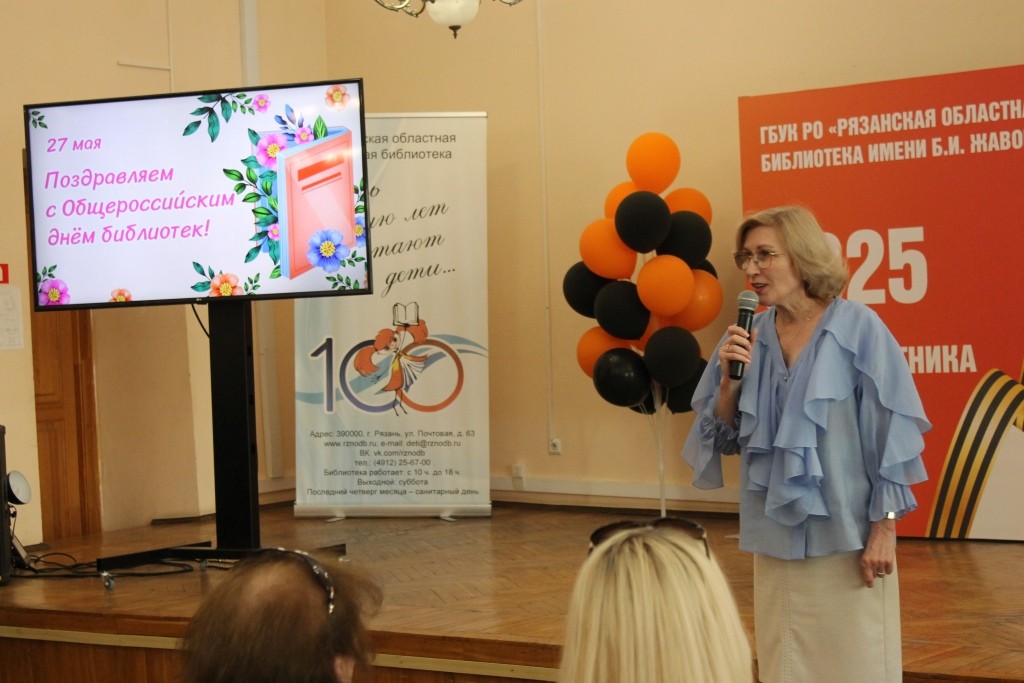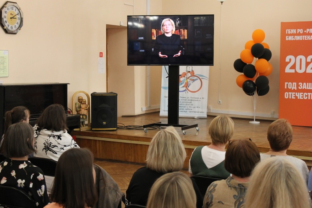 В этот чудесный день на мероприятии в читальном зале собрались члены коллектива, коллеги из Рязанской областной библиотеки им. Горького и ветераны. Открыло мероприятие видео-поздравление Ольги Любимовой, министра культуры Российской Федерации. Она отметила, что благодаря профессионализму и неиссякаемой энергии работников библиотек выросло не одно поколение образованных, грамотных российских граждан.