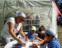 Библиотека им. Горького представила на фестивале площадку с увлекательным мастер-классом по изготовлению фигурок коровки из бумаги. Папы и мамы, бабушки и дедушки вместе с детьми с увлечением клеили фигурки, а также участвовали в викторине «Сколько корова дает молока?», отвечали на вопросы, узнали много нового и получили в подарок листовку со старинным рецептом блюда на основе молока.