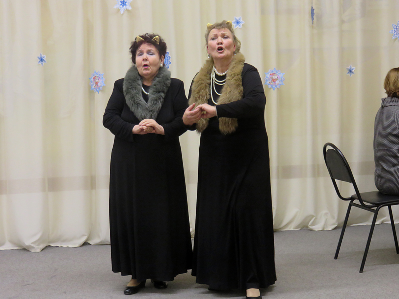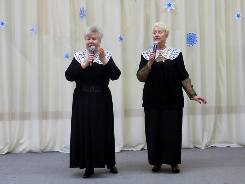 Порадовали своим выступлением солисты хора – Александр Рощин, Татьяна Ивашкина, Людмила Бабина, Татьяна Петровичева, Мария Чукомина, Людмила Суляева, исполнившие песни соло, дуэтом, трио. Проникновенно звучали «Гусарская баллада» В. Карминского, «Эй вы, сани» А. Кузина, «Вам не понять моей печали» А. Гурилева, «Русский вальс» А. Пахмутовой, «Слышишь, сани мчатся» А. Ермакова, «Снежинка» Ю. Саульского, «Старый клен» А. Пахмутовой, «Первопуток» А. Чернявского, «Снегопад» М. Михайлова.
